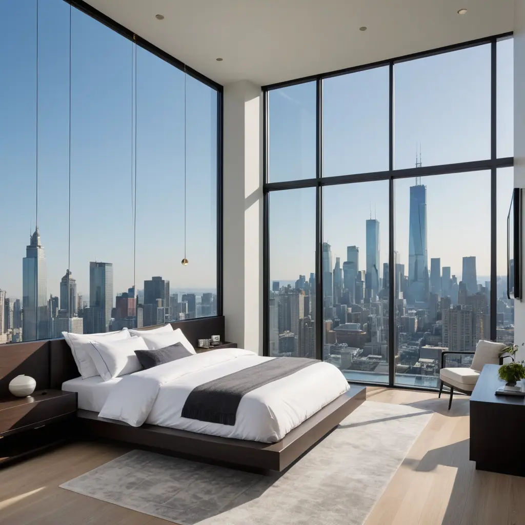 غرفة نوم رئيسية معاصرة معنص الصورةنسخغرفة نوم رئيسية معاصرة مع نوافذ ممتدة من الأرض حتى السقف، وسرير منصة عائم، وأضواء معلقة بسيطة، وإطلالات بانورامية على أفق المدينة أبعاد الصورةمربع الموديل المستخدم SDXL العرض1024 الارتفاع1024 تاريخ الإنشاء08/09/2024 التطبيق المستخدم مولّد الصور تحميل الدقة الكاملةتعديل الصورةولّد صورة مشابهة0
