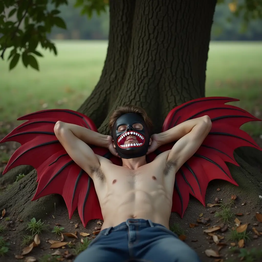 شاب نائم تحت شجره ويضعنص الصورةنسخشاب نائم تحت شجره ويضع يديه خلف راسه ويبدو انه مرتاح وعلى ضهره اجنحه كبيره بلون احمر وفي وجه قناع لون اسود يخطى راسه من امام بشكل كامل وفي قناع ابتسامه عريضه بلون احمر وعليها اسنان قرش وتكون عينونه بشكل X احمر وعلى كتف شاب حيوان القندس أبعاد الصورةمربع الموديل المستخدم Flux Dev العرض1024 الارتفاع1024 تاريخ الإنشاء02/11/2024 التطبيق المستخدم مولّد الصور تحميل الدقة الكاملةتعديل الصورةولّد صورة مشابهة0