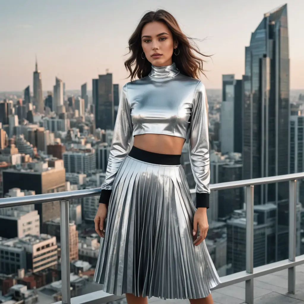 تنورة نسائية متوسطة الطول بطياتنص الصورةنسختنورة نسائية متوسطة الطول بطيات باللون الفضي المعدني مع بلوزة قصيرة ذات ياقة عالية سوداء، منظر للمدينة مستقبلي أبعاد الصورةمربع الموديل المستخدم SDXL العرض1024 الارتفاع1024 تاريخ الإنشاء08/09/2024 التطبيق المستخدم مولّد الصور تحميل الدقة الكاملةتعديل الصورةولّد صورة مشابهة0