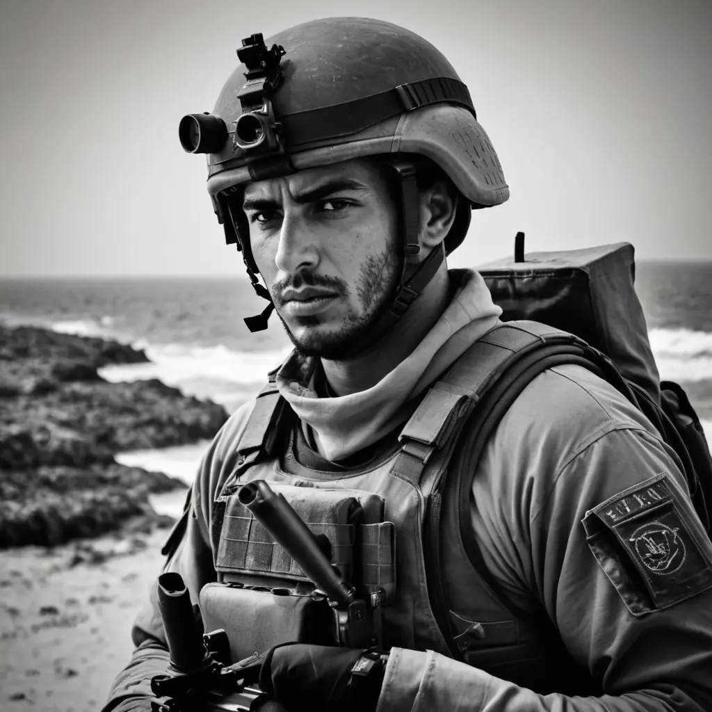 عسكري اردني من القوات الخاصةنص الصورةنسخعسكري اردني من القوات الخاصة ، و الصورة تكون بالفلتر الأسود و الرمادي ، اريده ان ينظر للخلف و ماسك سلاح رشاش أريده ان ينظر إلى البحر اريد الصورة ان تكون باتجاه خلف راسه أبعاد الصورةمربع الموديل المستخدم SDXL العرض1024 الارتفاع1024 تاريخ الإنشاء22/10/2024 التطبيق المستخدم مولّد الصور تحميل الدقة الكاملةتعديل الصورةولّد صورة مشابهة0