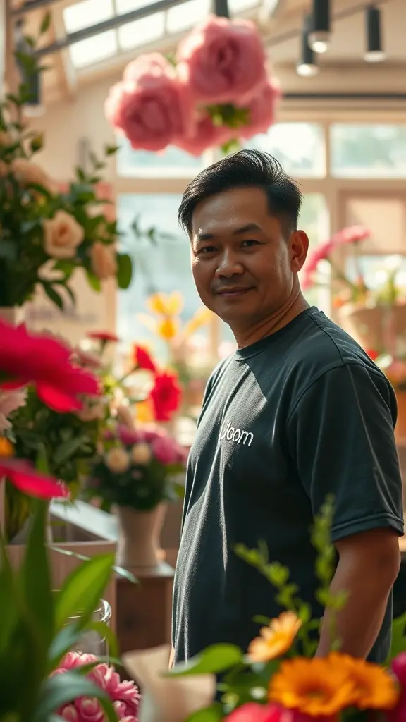 محل ورد من الداخل يشتغلنص الصورةنسخمحل ورد من الداخل يشتغل فيه عامل رجل فلبيني الجنسيه ، اسم المحل blooom او بلوم ، اضاءة الشمس داخل المحل ، المحل مليء بالورود الجميلة ، توجد في قميص العامل شعار المحل ( بلوم ) أبعاد الصورةعمودي الموديل المستخدم Flux Fast العرض576 الارتفاع1024 تاريخ الإنشاء11/09/2024 التطبيق المستخدم مولّد الصور تحميل الدقة الكاملةتعديل الصورةولّد صورة مشابهة0