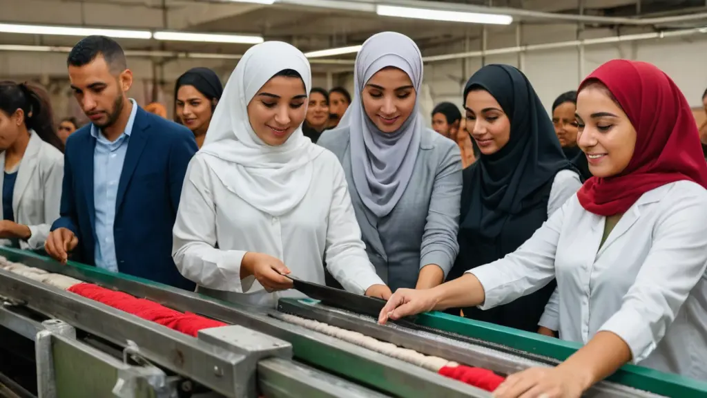 صورة لمجموعة من النساء والرجالنص الصورةنسخصورة لمجموعة من النساء والرجال الشباب مغاربة يشتغلون في معمل للنسيج ومبيان أو دالة تصاعدية لأرقام المعاملات مدمج بشكل لائق في الصورة مع العلم المغربي أبعاد الصورةافقي الموديل المستخدم SDXL العرض1024 الارتفاع576 تاريخ الإنشاء08/09/2024 التطبيق المستخدم مولّد الصور تحميل الدقة الكاملةتعديل الصورةولّد صورة مشابهة0