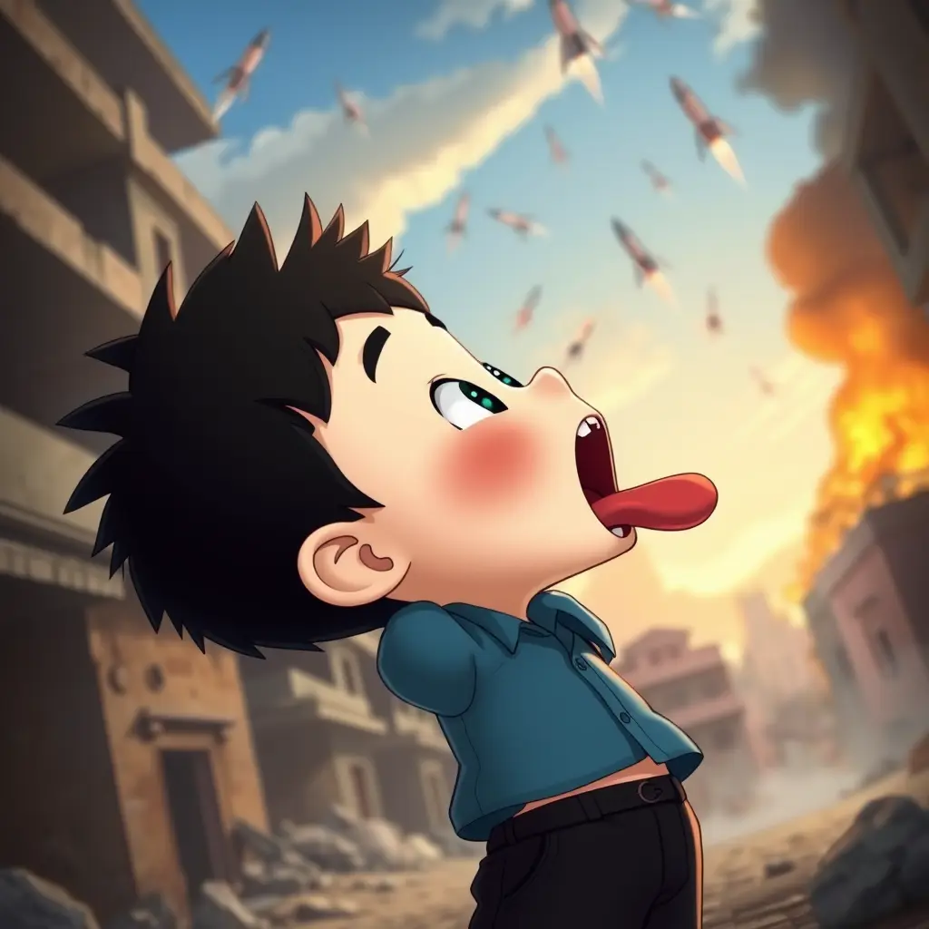 رسوم متحركة . لولد عمرهنص الصورةنسخرسوم متحركة . لولد عمره خمس سنوات لون بشرته بيضاء. ولون شعره اسود. يرتدي قميص ازرق وبنطال اسود. رأسه مرفوع للسماء وفمه مفتوح ولسانه بالخارج. و يوجد صواريخ ومنظر مباني مهدمة حوله أبعاد الصورةمربع الموديل المستخدم Flux Fast العرض1024 الارتفاع1024 تاريخ الإنشاء08/11/2024 التطبيق المستخدم مولّد الصور تحميل الدقة الكاملةتعديل الصورةولّد صورة مشابهة0