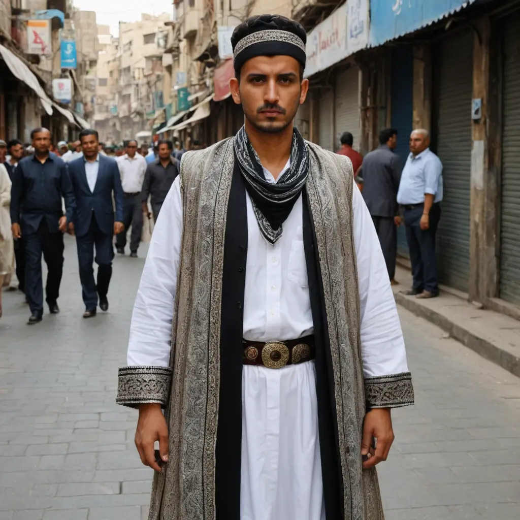 رجل يقف في الشارع مرتديًانص الصورةنسخرجل يقف في الشارع مرتديًا الزي التقليدي اليمني الذي يتضمن "الجنبية" (خنجر تقليدي يرتدى على الخصر)، مع زي يشمل المعطف والوشاح أبعاد الصورةمربع الموديل المستخدم SDXL العرض1024 الارتفاع1024 تاريخ الإنشاء08/09/2024 التطبيق المستخدم مولّد الصور تحميل الدقة الكاملةتعديل الصورةولّد صورة مشابهة0