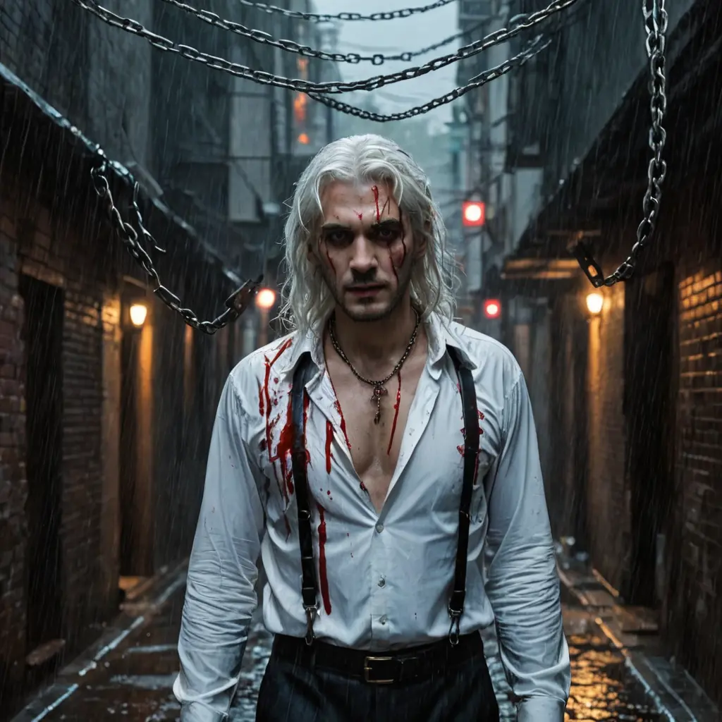 في وسط المطر رجل يحملنص الصورةنسخفي وسط المطر رجل يحمل سلاسل ملطخة بالدماء في زقاق مظلم عيناه حمراء ساطعة شعرة ابيض لؤلؤي أبعاد الصورةمربع الموديل المستخدم SDXL العرض1024 الارتفاع1024 تاريخ الإنشاء18/09/2024 التطبيق المستخدم مولّد الصور تحميل الدقة الكاملةتعديل الصورةولّد صورة مشابهة0