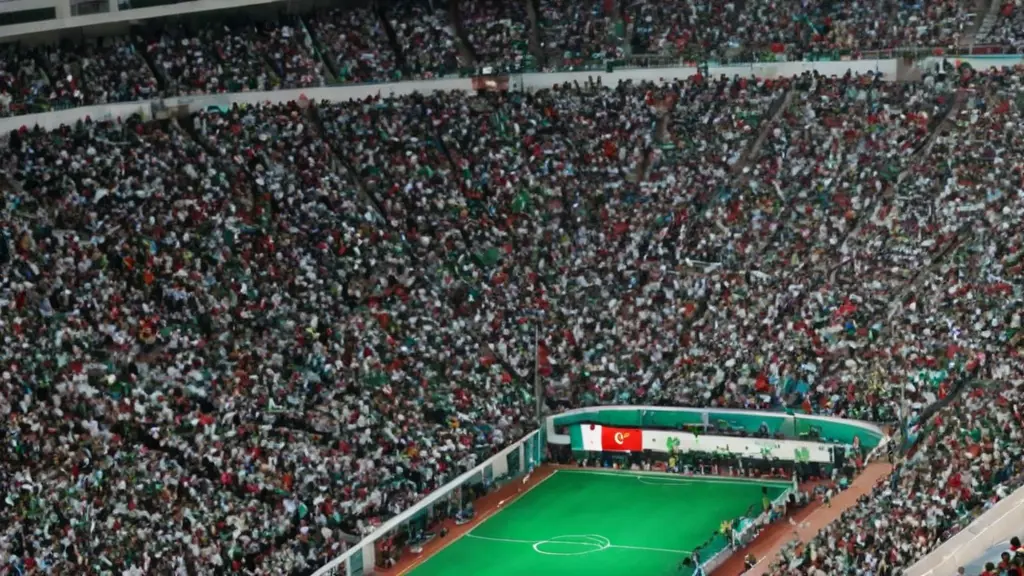 ملعب كرة القدم نظرة مننص الصورةنسخملعب كرة القدم نظرة من الفوق وهو مليء بالجمهور ويكون عددهم لوحة زيتية مشكلة علم الجزائر وعلم فلسطين أبعاد الصورةافقي الموديل المستخدم SDXL العرض1024 الارتفاع576 تاريخ الإنشاء19/10/2024 التطبيق المستخدم مولّد الصور تحميل الدقة الكاملةتعديل الصورةولّد صورة مشابهة0