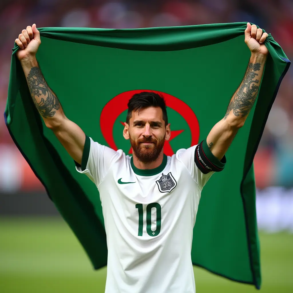 ميسي يرفع علم جزائرنص الصورةنسخميسي يرفع علم جزائر أبعاد الصورةمربع الموديل المستخدم Flux Dev العرض1024 الارتفاع1024 تاريخ الإنشاء09/09/2024 التطبيق المستخدم مولّد الصور تحميل الدقة الكاملةتعديل الصورةولّد صورة مشابهة0
