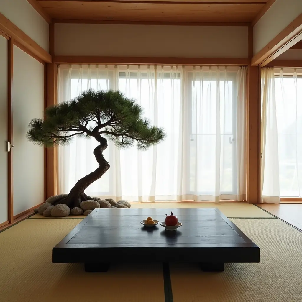 غرفة معيشة بسيطة مستوحاة مننص الصورةنسخغرفة معيشة بسيطة مستوحاة من الطراز الياباني مع ستائر شوجي وطاولة قهوة منخفضة مطلية باللون الأسود وأرضية من حصير التاتامي وشجرة صنوبر ملتوية واحدة كنقطة محورية أبعاد الصورةمربع الموديل المستخدم Flux Dev العرض1024 الارتفاع1024 تاريخ الإنشاء22/09/2024 التطبيق المستخدم مولّد الصور تحميل الدقة الكاملةتعديل الصورةولّد صورة مشابهة0