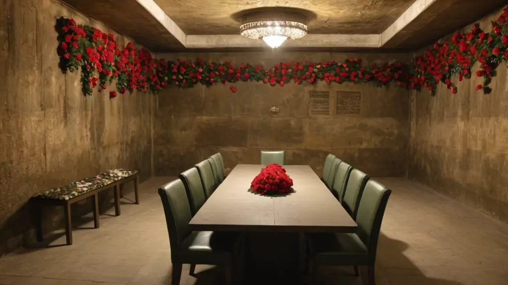ملجا تحت الارض مضيء ومزيننص الصورةنسخملجا تحت الارض مضيء ومزين وبداخله طاوله كبيره حولها كراسي يجلسون عليها ظباط جيش اسرائيلي ويبدو عليهم الخوف والمكان مزين ومنمق وشيك وبه بعض الورود والازهار والمكان جميل جدا أبعاد الصورةافقي الموديل المستخدم SDXL العرض1024 الارتفاع576 تاريخ الإنشاء14/10/2024 التطبيق المستخدم مولّد الصور تحميل الدقة الكاملةتعديل الصورةولّد صورة مشابهة0