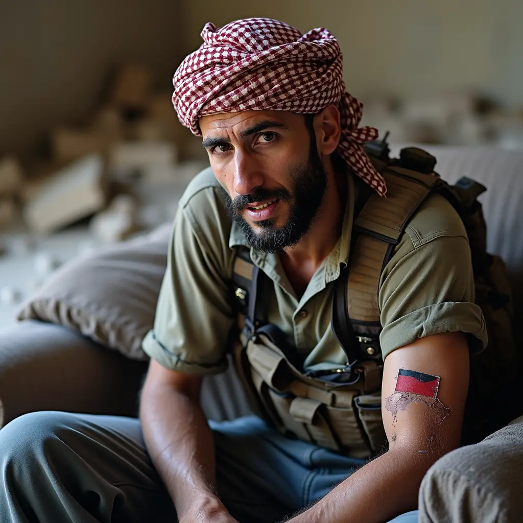 مقاتل فلسطيني ملثم بالكوفية مصابنص الصورةنسخمقاتل فلسطيني ملثم بالكوفية مصاب في ذراعه و يلهث جالس على اريكة في مكان كله حطام أبعاد الصورةمربع الموديل المستخدم Flux Dev العرض1024 الارتفاع1024 تاريخ الإنشاء19/10/2024 التطبيق المستخدم مولّد الصور تحميل الدقة الكاملةتعديل الصورةولّد صورة مشابهة0