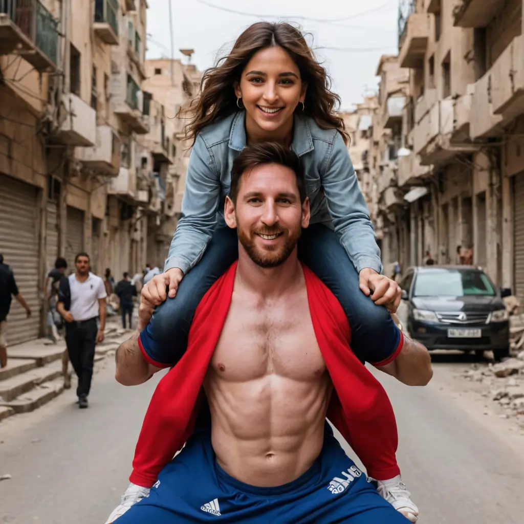 ميسي يحمل على اكتافه الممثلةنص الصورةنسخميسي يحمل على اكتافه الممثلة السورية دانا جبر في الشارع أبعاد الصورةمربع الموديل المستخدم SDXL العرض1024 الارتفاع1024 تاريخ الإنشاء26/10/2024 التطبيق المستخدم مولّد الصور تحميل الدقة الكاملةتعديل الصورةولّد صورة مشابهة0