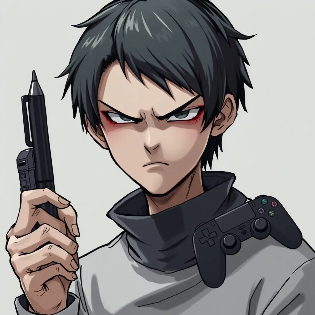 شخصية شبه حقيقية لا تملك مشاعر ووجه جاد وملامح رجولية ووجه مخيف وهي ولد في عمر 15 ولديه ملامح جادة وشعر اسود وعيون سوداء يحمل في يدها اليمنى يد تحكم الخاصة بالألعاب الالكترونية وفي يده اليسرى قلم ااسود للكتابة وهو محتار مذا يختار بين يد التحكم او القلم