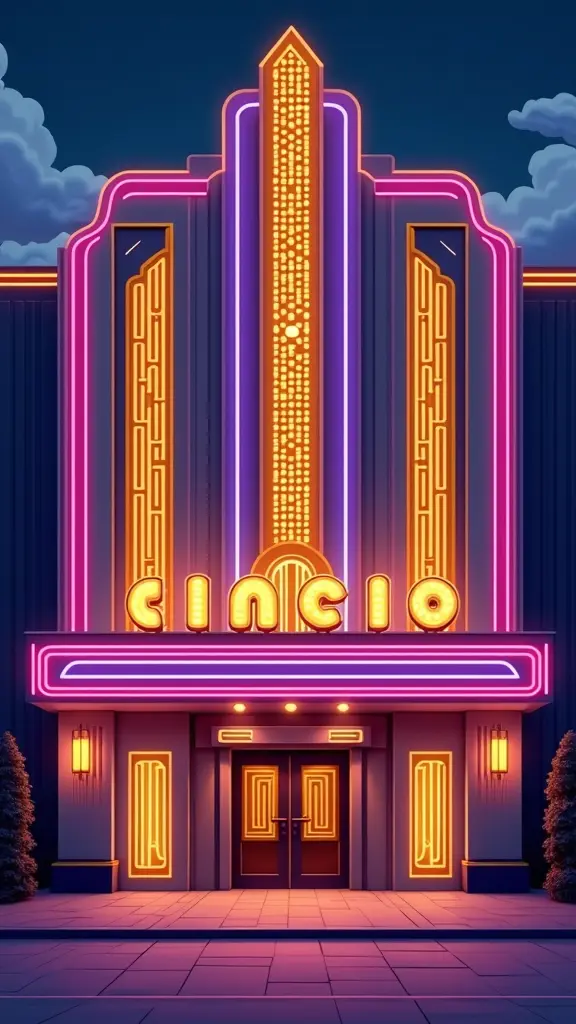 واجهة سينما مستوحاة من فننص الصورةنسخواجهة سينما مستوحاة من فن الديكو، أنماط هندسية، أضواء نيون، رسم توضيحي، ألوان ذهبية وبنفسجية. أبعاد الصورةعمودي الموديل المستخدم Flux Dev العرض576 الارتفاع1024 تاريخ الإنشاء17/10/2024 التطبيق المستخدم مولّد الصور تحميل الدقة الكاملةتعديل الصورةولّد صورة مشابهة0