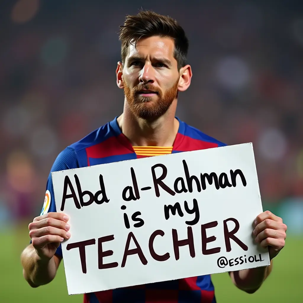 ميسي يمسك لافتة مكتوب عليهانص الصورةنسخميسي يمسك لافتة مكتوب عليها عبدالرحمن هو معلمي أبعاد الصورةمربع الموديل المستخدم Flux Dev العرض1024 الارتفاع1024 تاريخ الإنشاء01/10/2024 التطبيق المستخدم مولّد الصور تحميل الدقة الكاملةتعديل الصورةولّد صورة مشابهة0