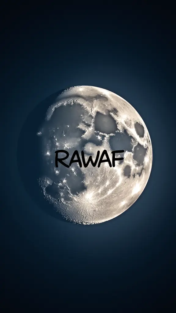منظر للقمر ونص الصورةنسخ منظر للقمر و مكتوب في منتصفها كلمه RAWAF أبعاد الصورةعمودي الموديل المستخدم Flux Dev العرض576 الارتفاع1024 تاريخ الإنشاء19/09/2024 التطبيق المستخدم مولّد الصور تحميل الدقة الكاملةتعديل الصورةولّد صورة مشابهة0