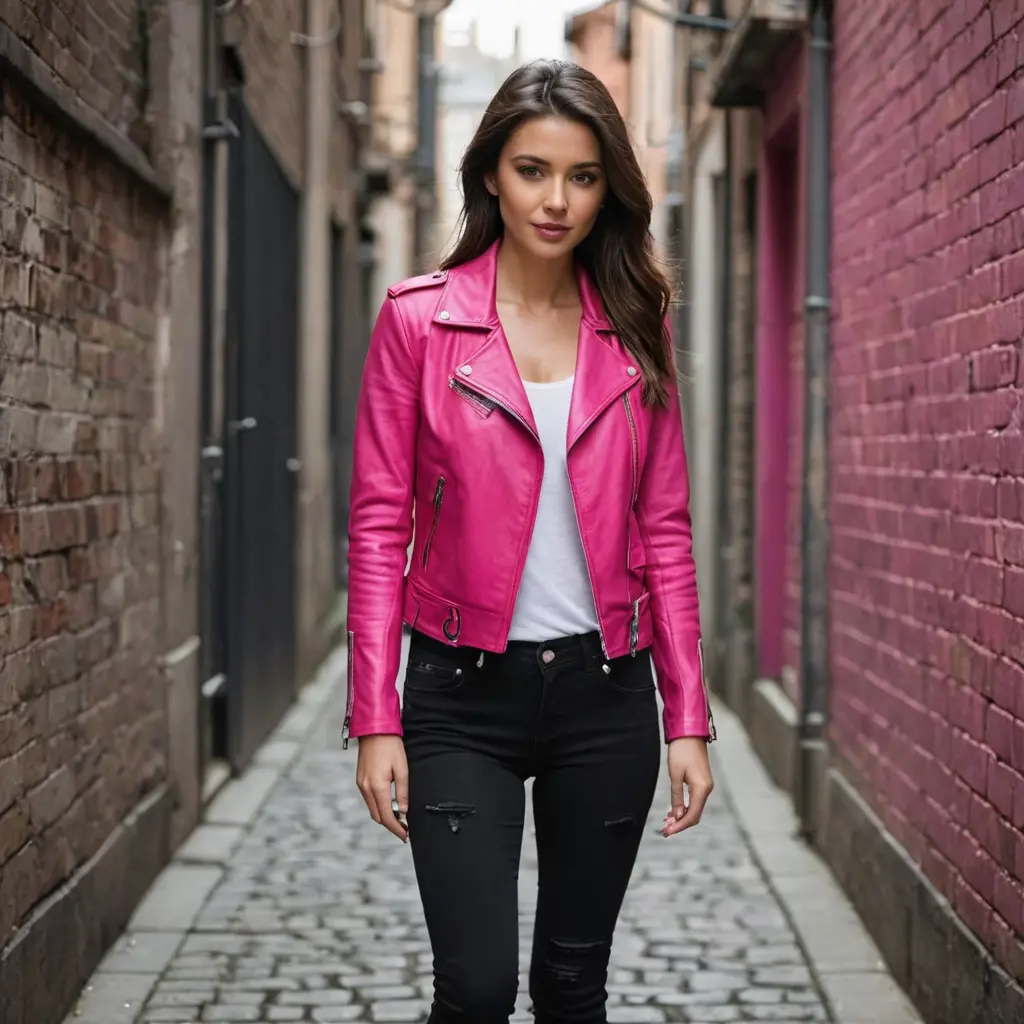 سترة راكبي الدراجات النارية مننص الصورةنسخسترة راكبي الدراجات النارية من الجلد باللون الوردي الفاقع مع بنطال جينز أسود ضيق، مشهد أزقة قذرة أبعاد الصورةمربع الموديل المستخدم SDXL العرض1024 الارتفاع1024 تاريخ الإنشاء08/09/2024 التطبيق المستخدم مولّد الصور تحميل الدقة الكاملةتعديل الصورةولّد صورة مشابهة0