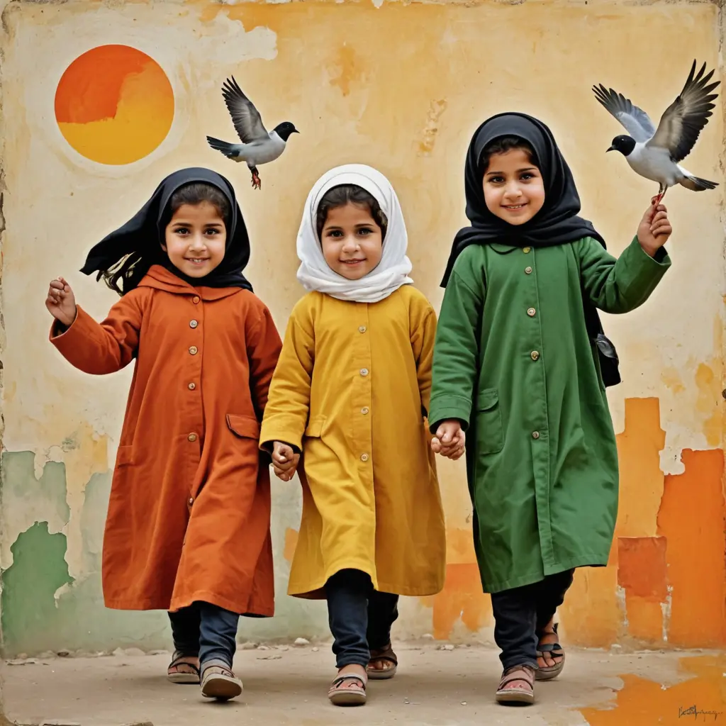 قم بانشاء صوره تجريدية عن أطفال فلسطين. تخيل لوحة تحتوي على الألوان الدافئة التي تمثل الأمل، مثل الأصفر والبرتقالي، مع لمسات من الأخضر للدلالة على الحياة. يمكنك تضمين أشكال مجردة تمثل الأطفال، مثل ظلال صغيرة تلعب أو تضحك، مع عناصر رمزية مثل الحمام أو الزيتون، والتي تمثل السلام والحنين. إذا كان لديك أفكار معينة أو عناصر ترغب في تضمينها، يمكنني مساعدتك في تطويرها أكثر!