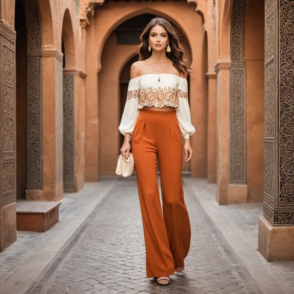 بنطال بالازو برتقالي محترق عالينص الصورةنسخبنطال بالازو برتقالي محترق عالي الخصر مع بلوزة كريمية مكشوفة الأكتاف، تصميم مستوحى من الطراز المغربي أبعاد الصورةمربع الموديل المستخدم SDXL العرض1024 الارتفاع1024 تاريخ الإنشاء07/09/2024 التطبيق المستخدم مولّد الصور تحميل الدقة الكاملةتعديل الصورةولّد صورة مشابهة0