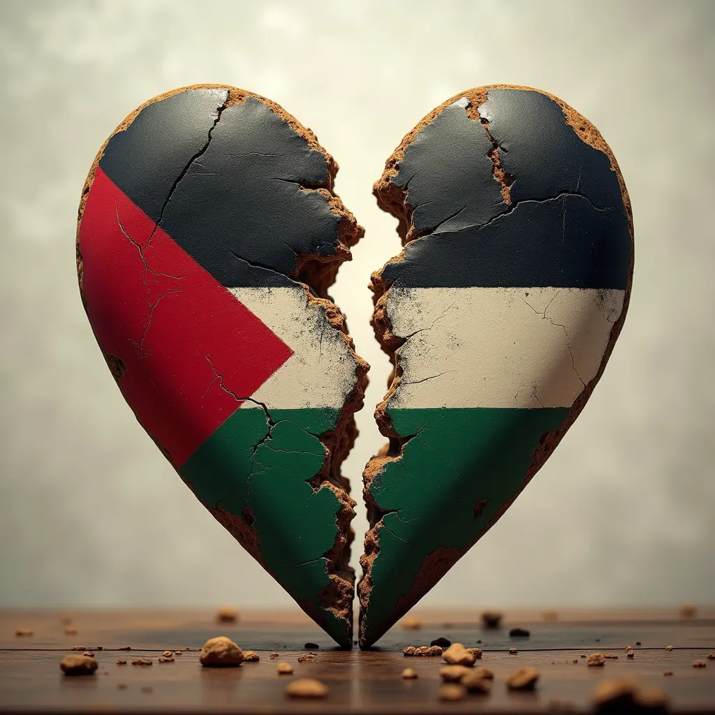 قلب مكسور في داخل الكسر علم اليمن وفلسطين