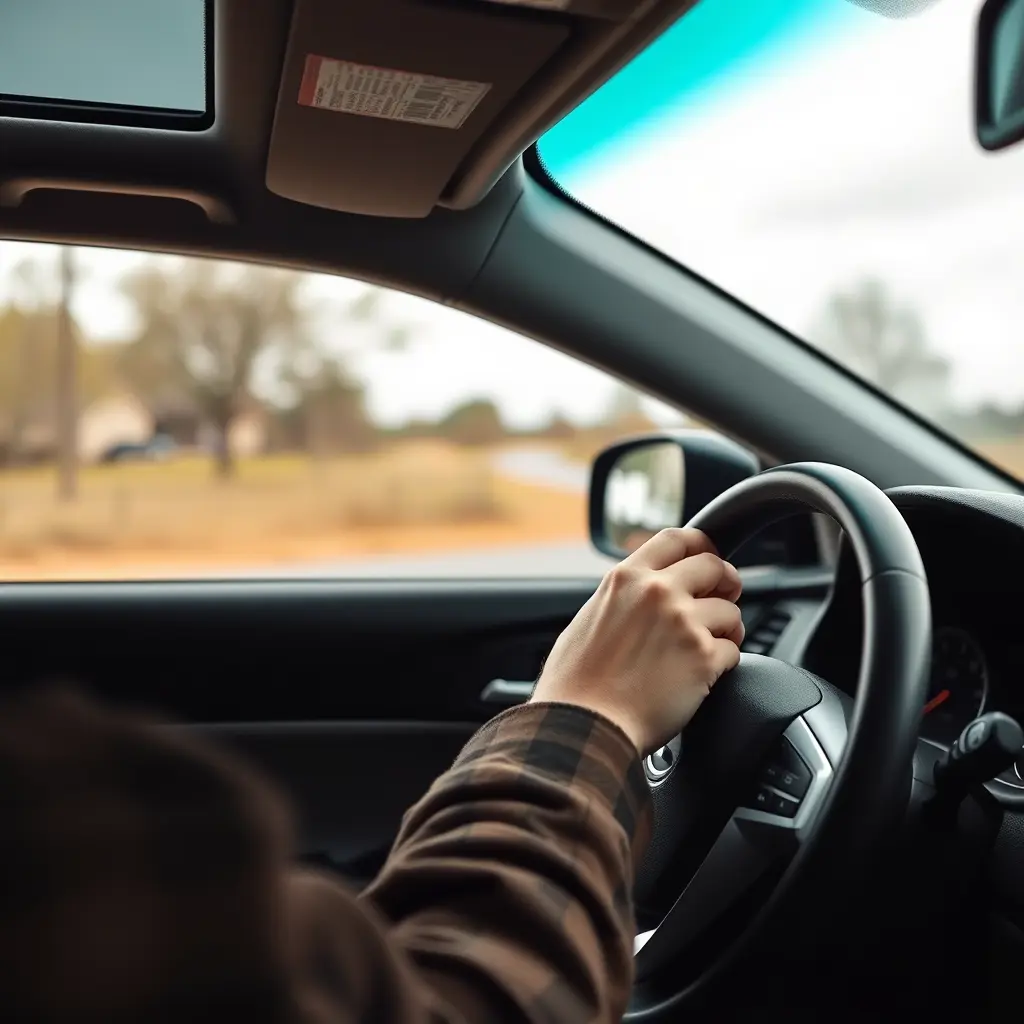 صورة لشخص يقود السيارة ويده على الدركسيون