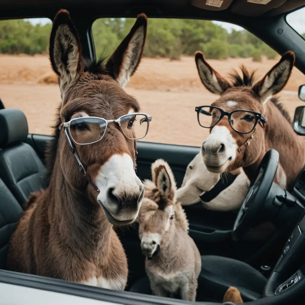 حمار يقود السياره ويرتدي نضاره بجانب صديقته