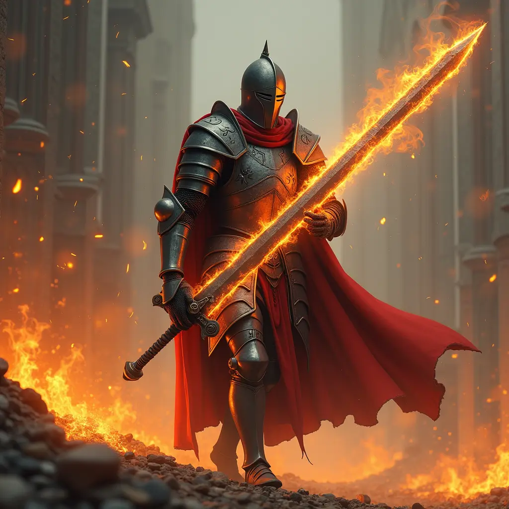 صوره لفارس يحمل سيف كبير من النار