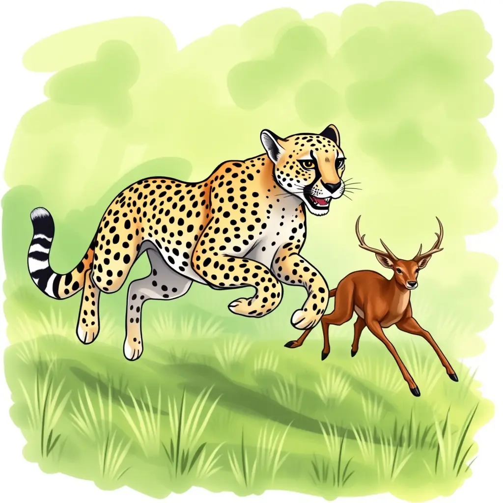 ارسم لي صوره لفهد يجري خلف غزال بسرعه فائقه بخلفيه الخضراء رائعه