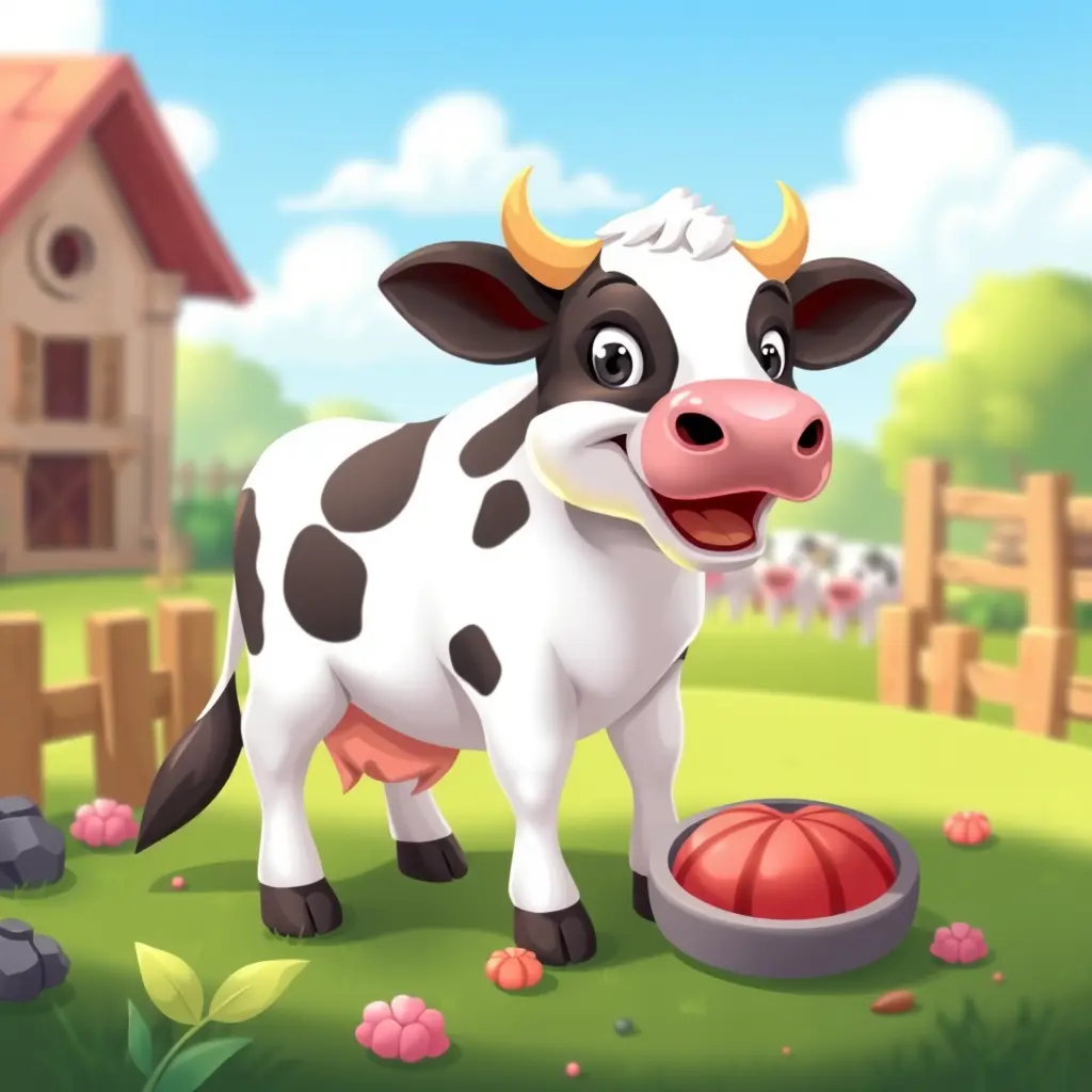 بقرة تأكل اريد شكل لأستخدمه في لعبة HTML5 من اجل لعبة مزرعة للموبايل بتصميم عصري مرح وجذاب يشبه لعبة المزرعة السعيدة