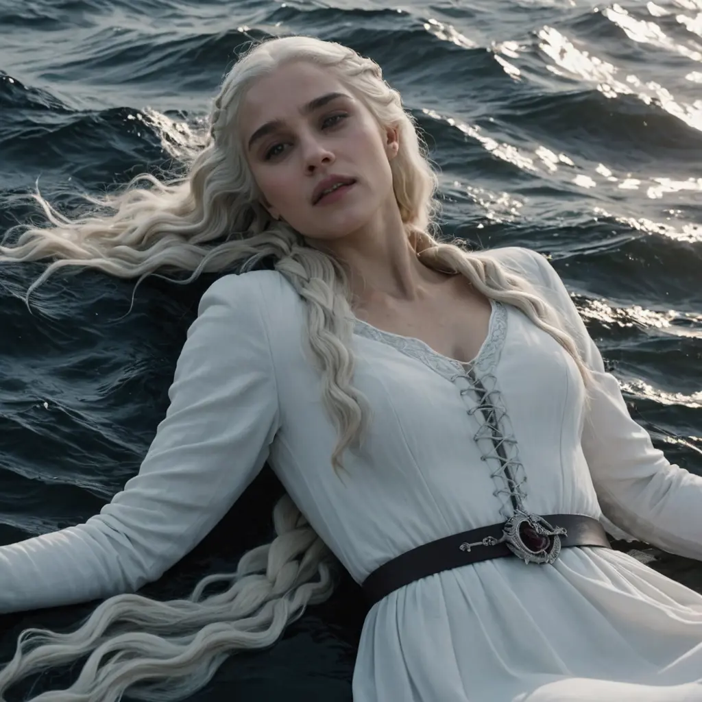 صورة رينيرا تارغيريان ترتدي ابيض وهي ميتة في البحر