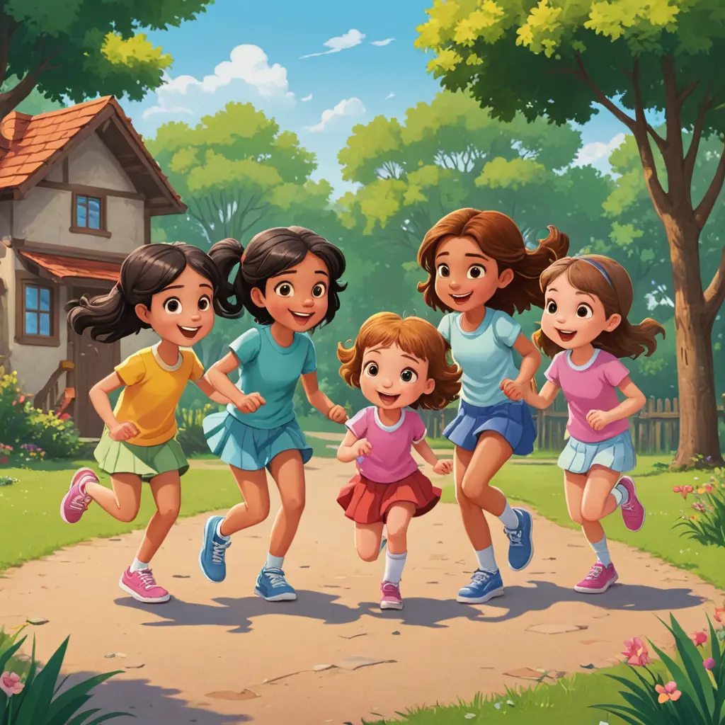 صورة كرتونية خمسة بنات يلعبن