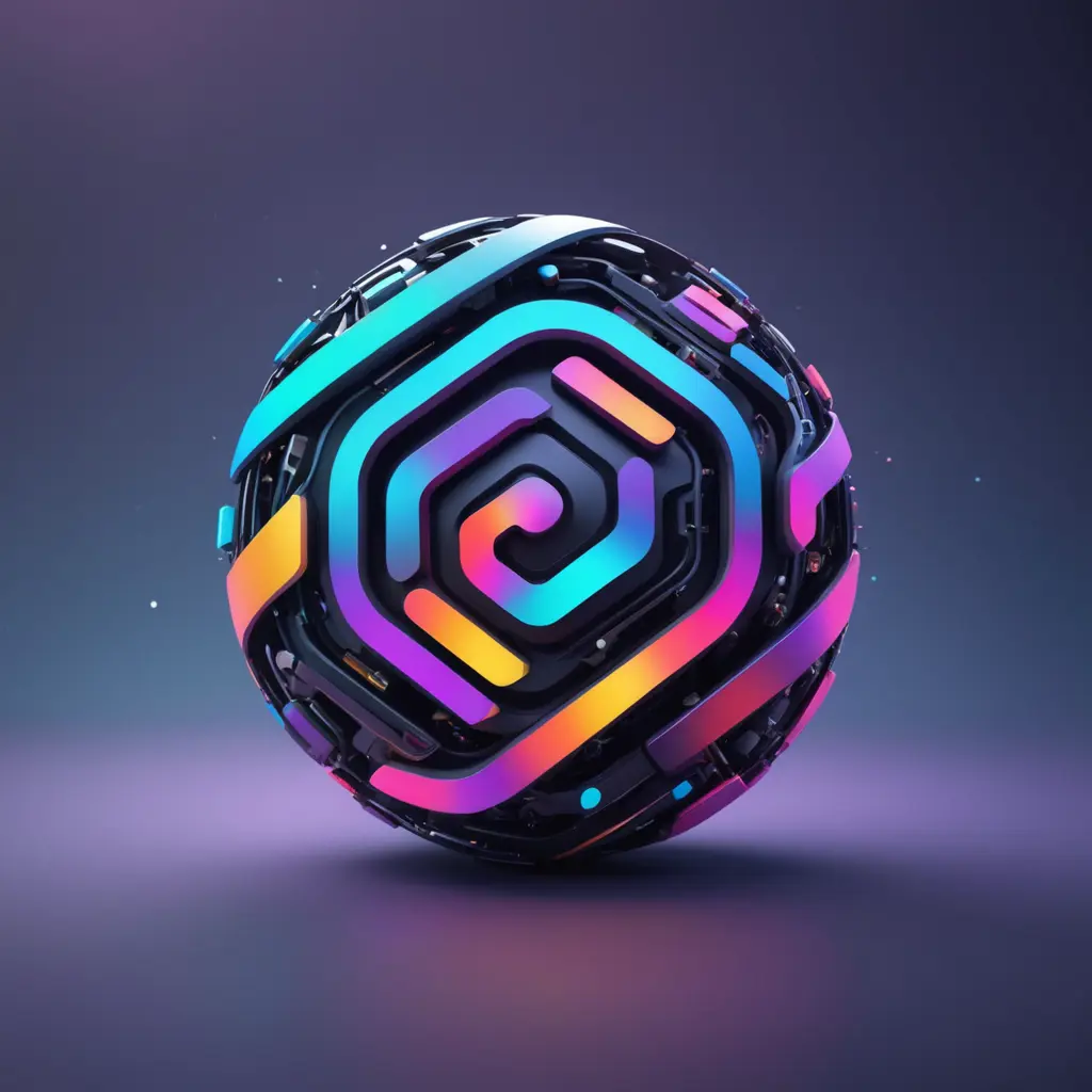 شعار توضيحي مذهل لتطبيق يعمل بالذكاء الاصطناعي يساعدك علي أن تجد ما تريده بالحياة، أسلوب فني، تأثير ثلاثي الأبعاد، مستقبلي، بسيط