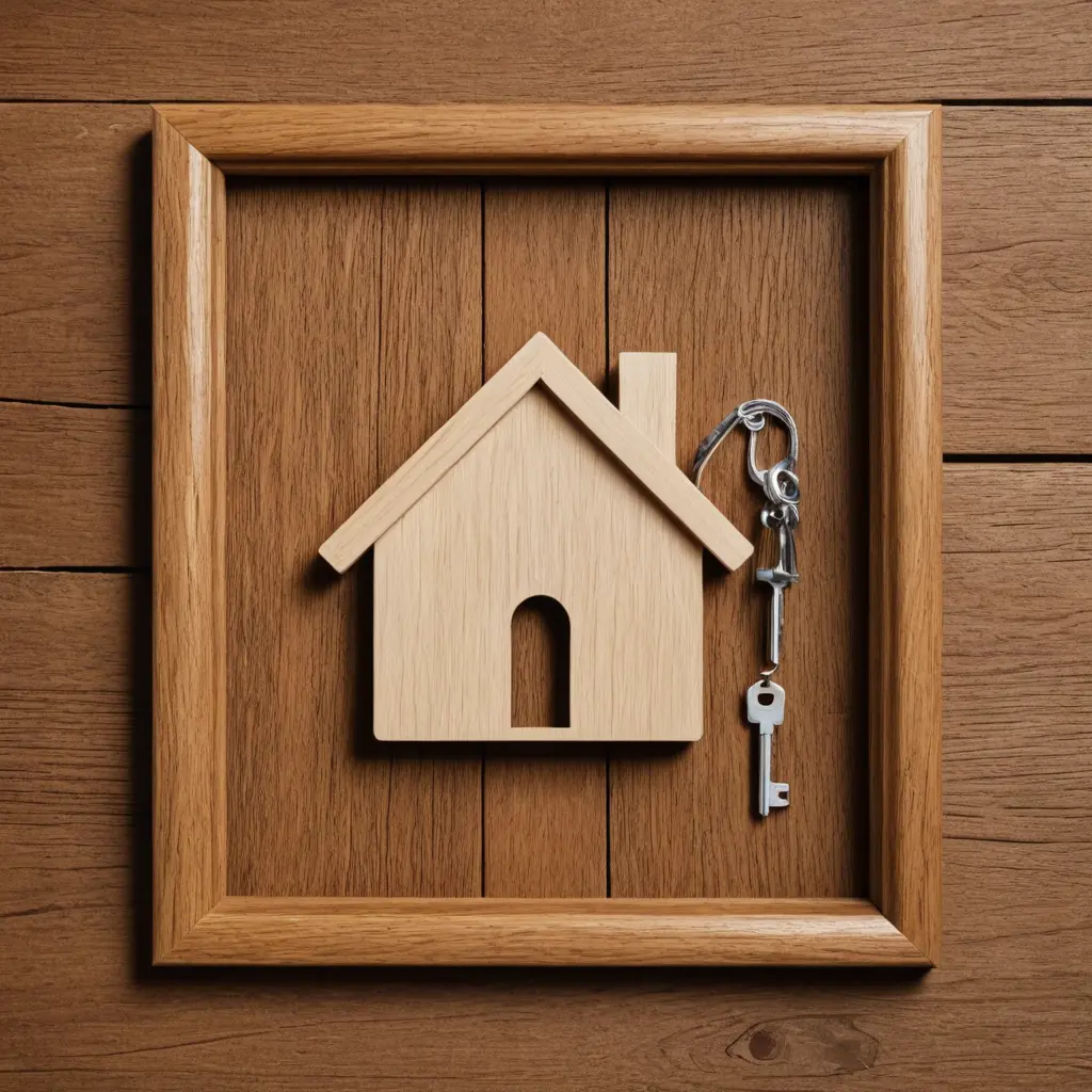 بطاقة، إطار من مفتاح البيت وأيقونة المنزل، مركز فارغ على شكل منزل، نسيج يشبه الخشب، زخارف بساط الترحيب.