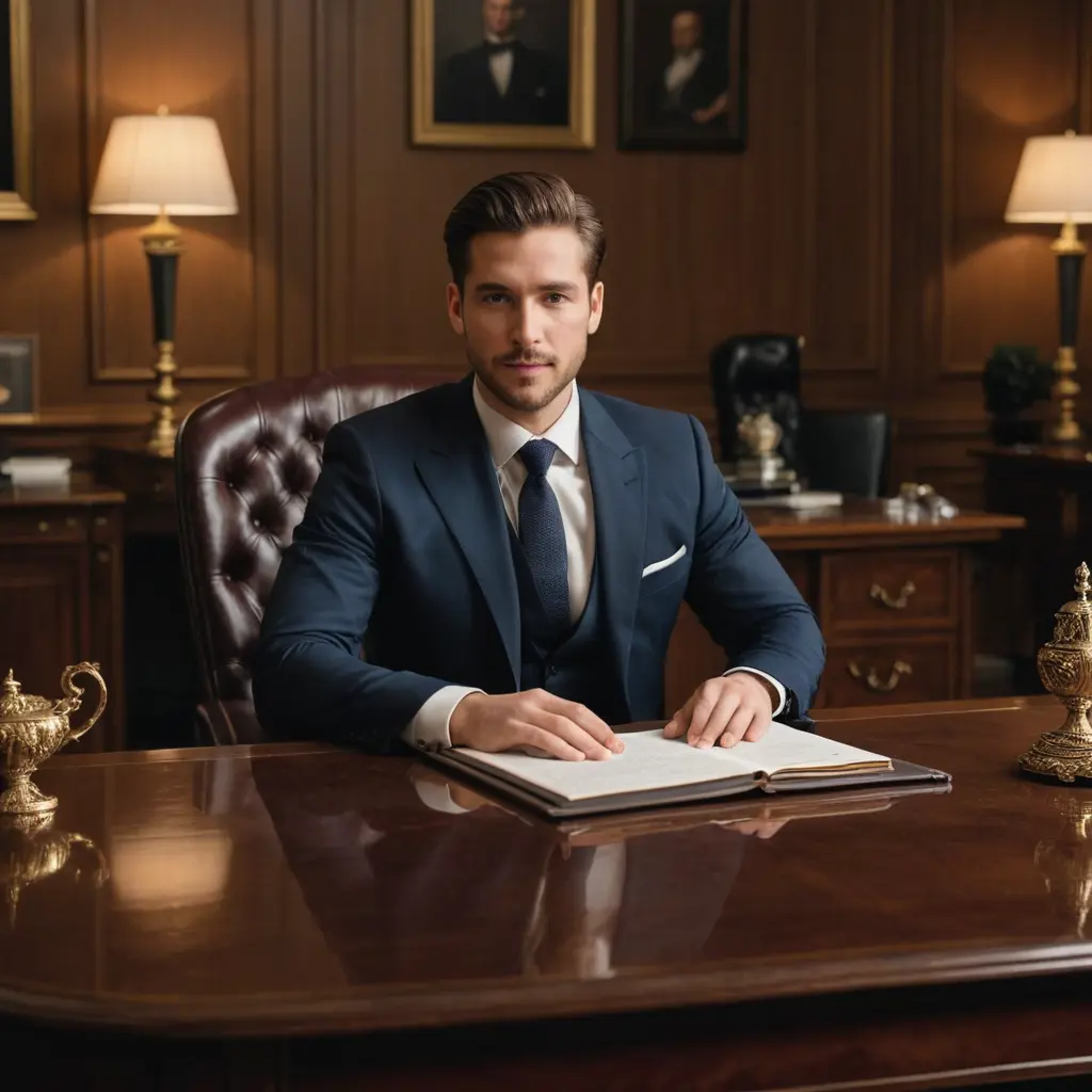 رجل يبلغ من العمر 30 عام يجلس خلف مكتب فخم