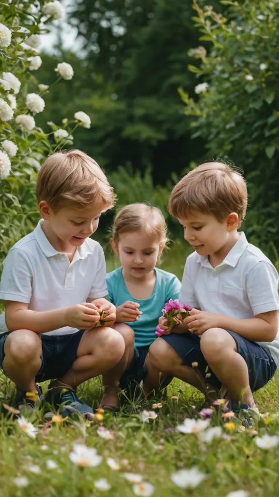 ولدين وبنت اخوات صورة 4k يلعبو بين الزهور