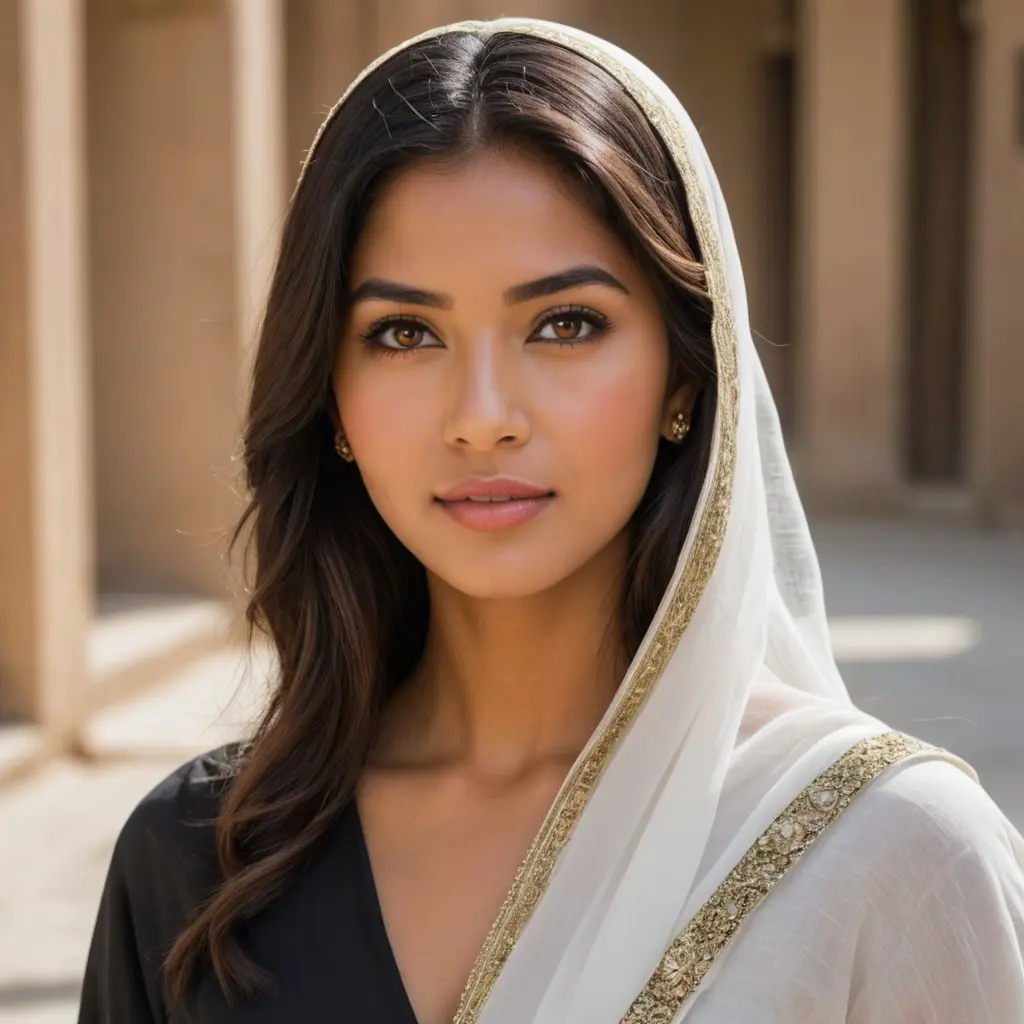 امرأة عربية ذات ملامح فلبينية وشعر وعيون هندية وجه ممتلئ دائري انف صغير