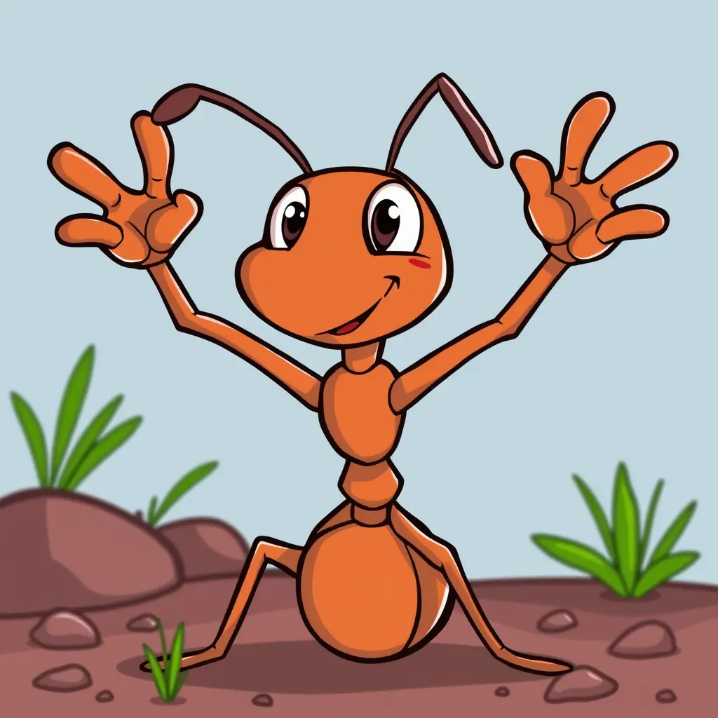 نملة كرتون ترفع يديها