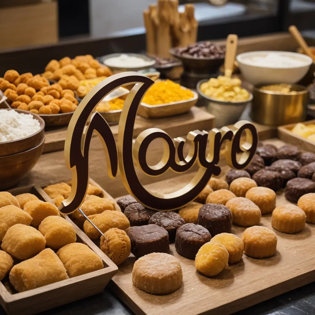 ‏شعار محل حلويات تقليدية اسمها نور أحرف الاسم المطعم قم بكتابتها باستخدام أدوات المطعم