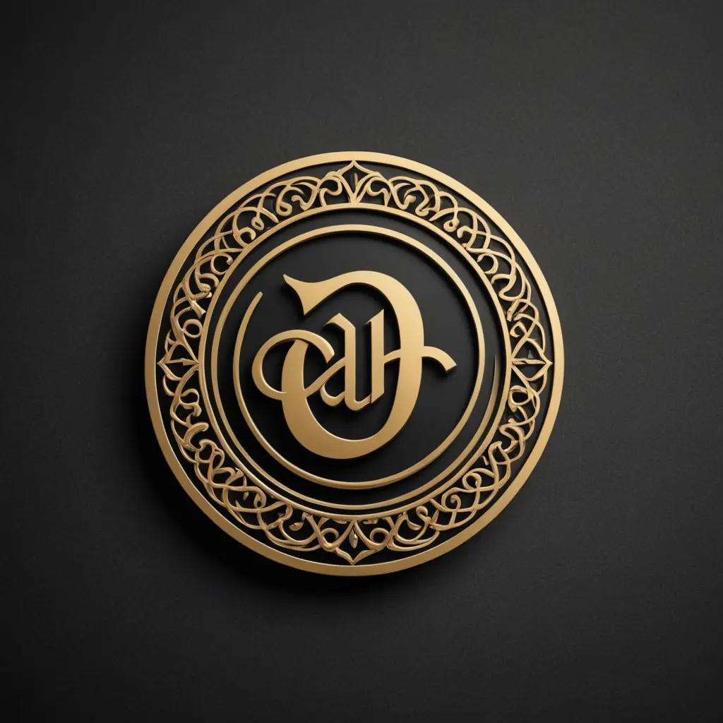 شعار لشركة ذهب باسم عمر العلاف بشكل مدمج ومزخرف، بألوان الذهبي والاسود المطفي، تصميم عصري وفخم