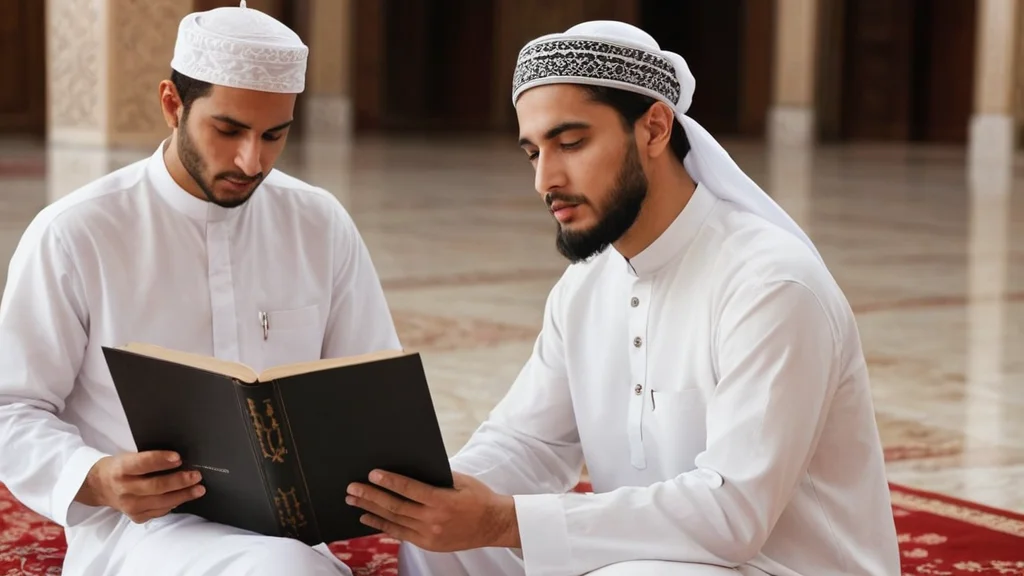 صمم لي صورة رجل يلبس ثوب ابيض وغتره بيضاء وعقال اسود في مسجد يقرأ سورة الكهف
