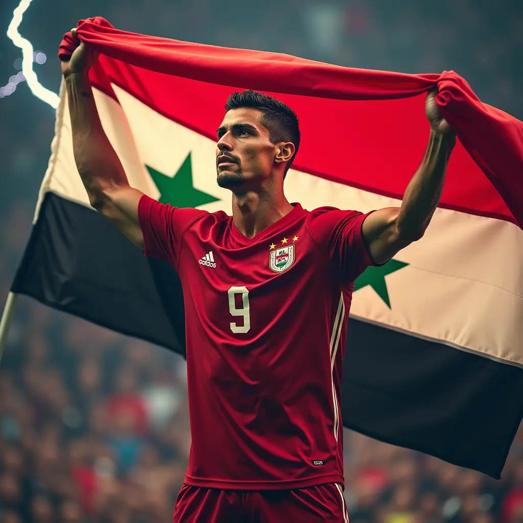 رونالدو يحمل علم سوريا وخلفه برق بلون الإمبراطوري