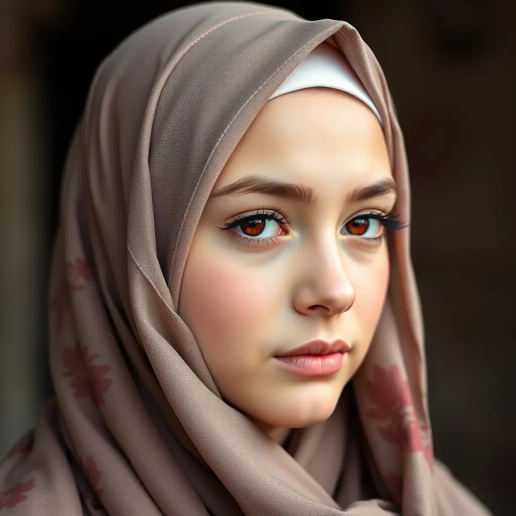 فتاة حقيقية عمرها 16 جميله جدا هي ترتدي حجاب بطريقه جميلة  وعينها حمراوتان مثل الدماء ولديها رموش كثيفه