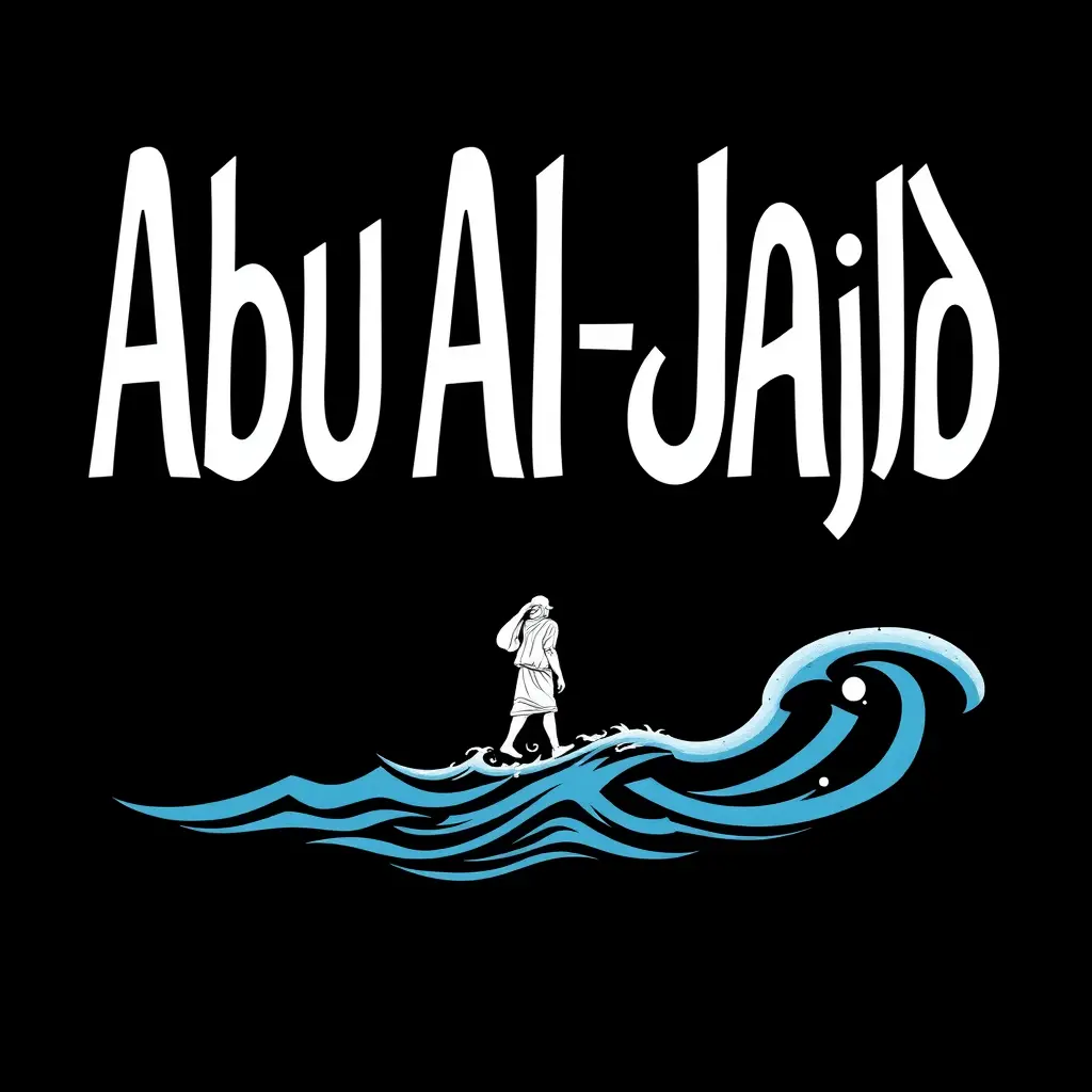 إسم ابو المجد مزخرف مع رجل يمشي على البحر خلفيه سوداء