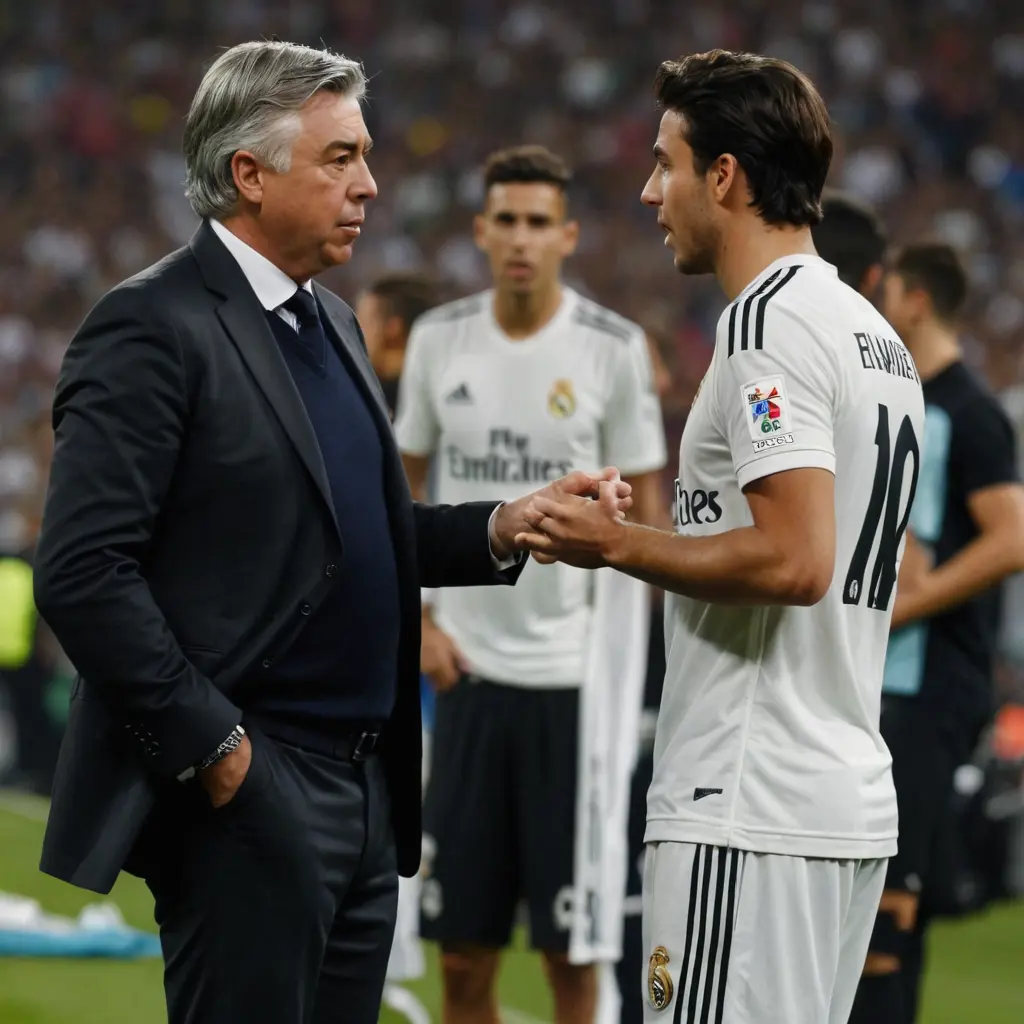 صور امبابي لاعب ريال مدريد وهوا بيكلم المدرب بتاعو انشلوتي