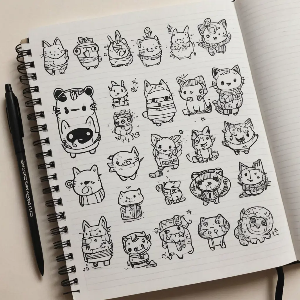 صورة لرسومات عشوائية كيوت بالقلم على الكراس