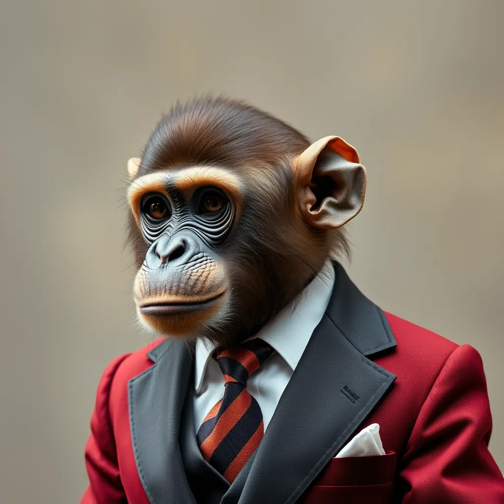 صورة قرد يرتدى بدلة كلاسيكيه