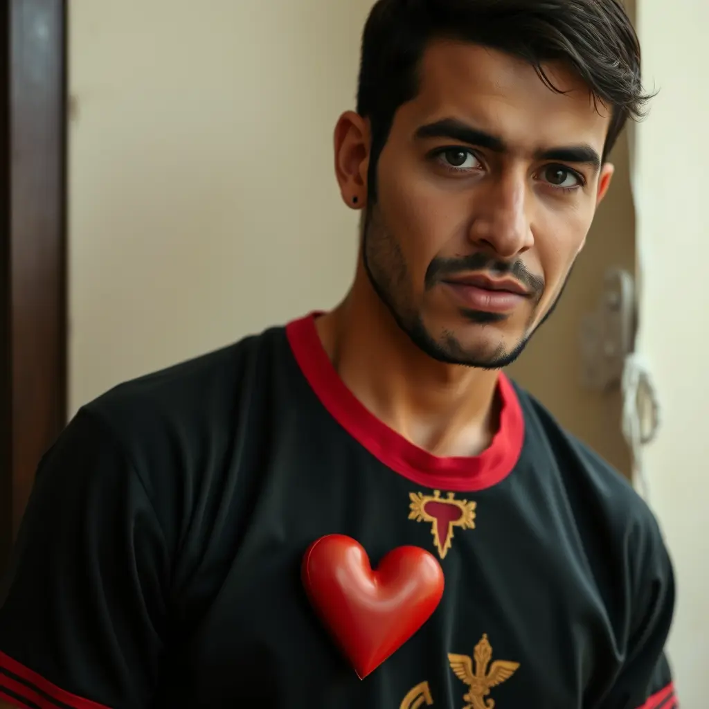 صوره رجل يرتدي قميص ماروني هاشم و بنين وقلب صغير