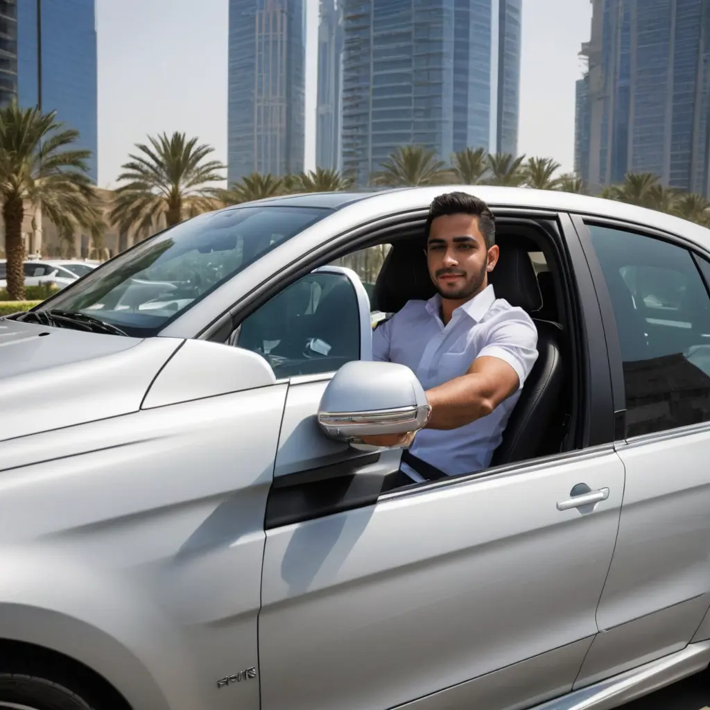 شاب مصرى يقود سياره مرسيدس عند برج خليفه