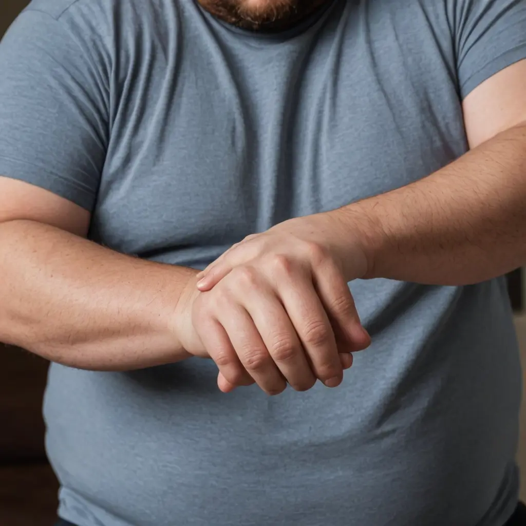 رجل سمين يقوم بتشمير يده