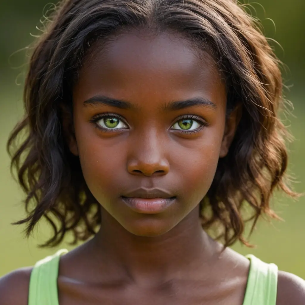 فتاة سمراء البشرة وعيونها خضراء تبلغ من العمر 12