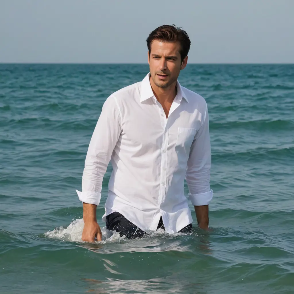 رجل عله البحر ويرتدي قميص ابيض